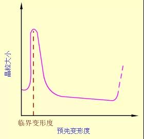 (2)預先變形度 變形度的影響主要與金屬變形的均勻度有關。變形越不均勻, 再結(jié)晶退火后的晶粒越大。變形度很小時,因不足以引起再結(jié)晶,晶粒不變。當變形度達到2~10%時,金屬中少數(shù)晶粒變形,變形分布很不均勻,所以再結(jié)晶時生成的晶核少,晶粒大小相差極大,非常有利于晶粒發(fā)生吞并過程而很快長大,結(jié)果得到極粗大的晶粒。使晶粒發(fā)生異常長大的變形度稱作臨界變形度。生產(chǎn)上應盡量避免在臨界變形度范圍內(nèi)的塑性變形加工。超過臨界變形度之后,隨變形度的增大,晶粒的變形更加強烈和均勻,再結(jié)晶核心越來越多,因此再結(jié)晶后的晶粒越來越細小。但是當變形度過大(約≥90%)時, 晶??赡茉俅纬霈F(xiàn)異常長大,一般認為它是由形變織構(gòu)造成的。