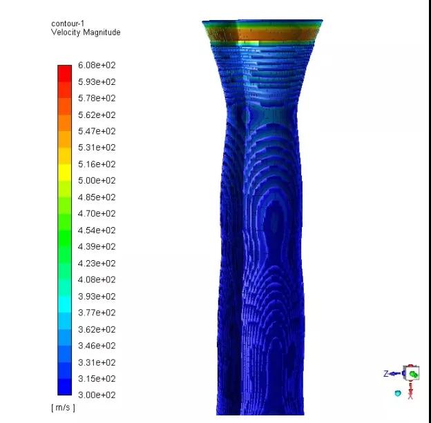圖 2 Fluent 計(jì)算模擬的霧化流場(chǎng)結(jié)果(速度場(chǎng))
