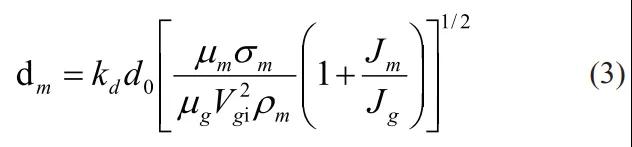 其中,dm 為粉末平均粒度,kd 為常數(shù),一般為 40-50,d0 導(dǎo)流管直徑,Jm 為液態(tài)金屬流量,Jg為氣體流量,μm 和μg 分別為液態(tài)金屬和氣體的動(dòng)力黏性系數(shù),Vgi 為霧化氣流場(chǎng)的初始流速,σm 為液態(tài)金屬表面張力,ρm和ρg分別為液態(tài)金屬的流體密度和氣體的密度。