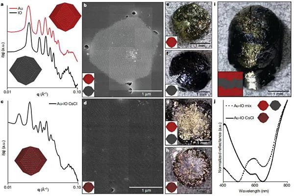 納米顆粒組裝已經被提出作為一種理想的方法來構建材料的層次組織,通過選擇納米尺度的組件來自下而上構建整個材料。多尺度結構控制是非??扇〉?,這是源于化學組成、納米尺度順序、微觀結構和宏觀形式都影響物理性質。然而,通常決定納米顆粒有序的化學相互作用,并不能提供任何在更大長度尺度上操縱結構的手段。微觀結構和宏觀形態(tài)仍然是未充分探索的設計參數,開發(fā)能夠將單個自組裝結構結合成宏觀的加工技術,將是開發(fā)在所有尺寸狀態(tài)下具有完全結構控制的納米顆粒的重要步驟。因此,基于納米顆粒的材料開發(fā)需要在不犧牲其自組裝納米級排列的情況下,定制微觀和宏觀結構的加工策略。其中,納米復合技術(NCT)非常適合生產此類分層材料,源于其固有的可伸縮成分組成,并使用動態(tài)結合相互作用來決定納米顆粒如何排列成有序陣列。每個NCT均由覆蓋有聚合物的無機納米顆粒組成,其中每個聚合物鏈均終止于超分子結合基團。將溶劑分散的NCT與互補結合基團混合后,超分子相互作用將顆粒組裝成更大的結構。由于將NCT連接在一起的超分子相互作用是動態(tài)的,因此通過其解離溫度冷卻一系列NCT,可使它們組織成有序的超晶格。然而,由于聚合物鏈在干燥過程中迅速收縮,之前試圖從組裝溶劑中去除晶格的嘗試導致了晶格的混亂。因此,從這些NCTs中形成獨立的宏觀固體,首先需要一些方法來穩(wěn)定它們,以防止在溶劑去除過程中的順序損失。今日,美國麻省理工學院 Robert J. Macfarlane教授課題組(通訊作者)提出通過逐漸引入與聚合物發(fā)生不利相互作用的非溶劑來穩(wěn)定晶格,以防止聚合物塌陷,與該非溶劑的相互作用將導致鏈采用較致密的構型并使晶格收縮。從而演示了快速組裝以克為單位的多面納米顆粒超晶格微晶的方法,利用此方法這些晶體可以類似于塊狀固體的燒結,進一步形成宏觀物體。該方法的關鍵是:控制納米顆粒組裝的化學相互作用在后續(xù)處理步驟中保持活性,這使得在形成宏觀材料時,可以保留顆粒的局部納米級有序性??梢愿鶕Ц裎⒕У某叽?,化學組成和晶體對稱性來調整固體的納米結構和微觀結構,微觀結構和宏觀結構可以通過后續(xù)的加工步驟進行控制。因此,這項工作提供了一種通用的方法,可以同時控制分子到宏觀長度尺度上的結構組織。相關研究成果以“Macroscopic materials assembled from nanoparticle superlattices”為題發(fā)表在Nature上。