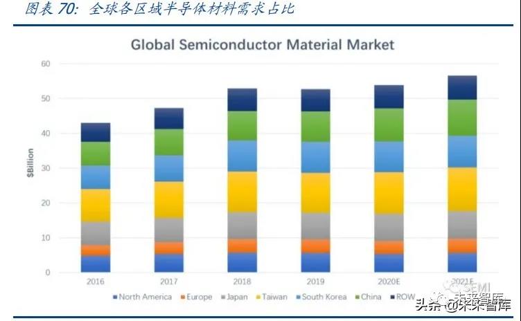 在 2019 年期間,整個半導(dǎo)體材料 521 億美元的市場規(guī)模之中,半導(dǎo)體晶圓制造材料占 據(jù)了約 63%,達(dá)到了 328 億元。晶圓制造材料的持續(xù)增長也是源自于當(dāng)前制造工藝不 斷升級帶來的對于材料的更大的消耗所致。