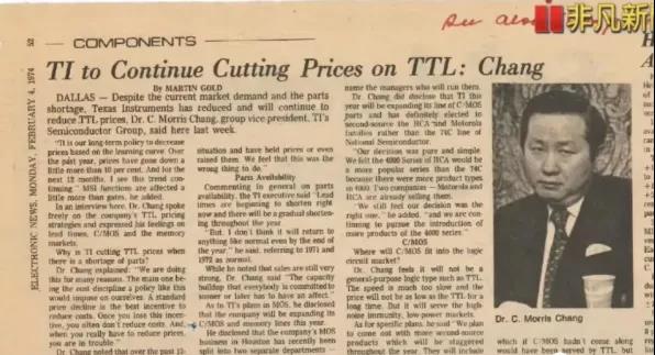 張忠謀在德州儀器工作。來源:semiwiki