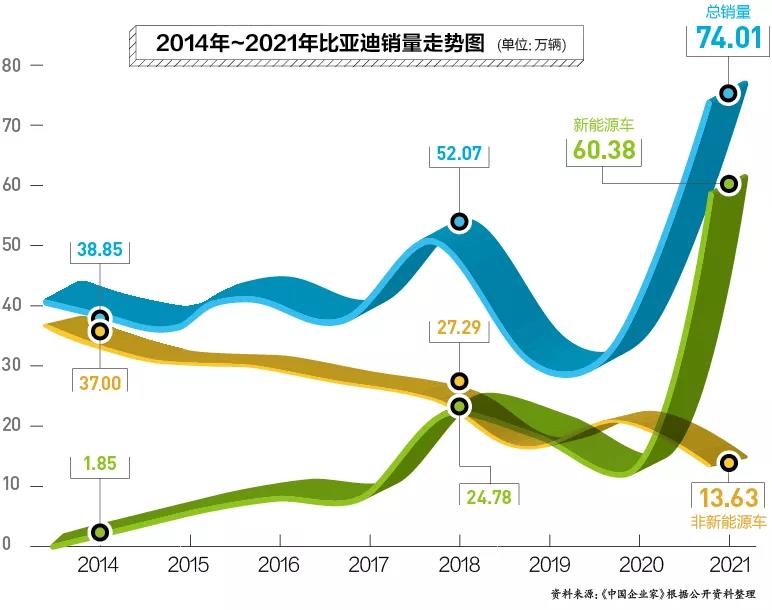 對比亞迪來說,新能源汽車對燃油車的替代是一場跨越十年的迭代,或者說自我革命。