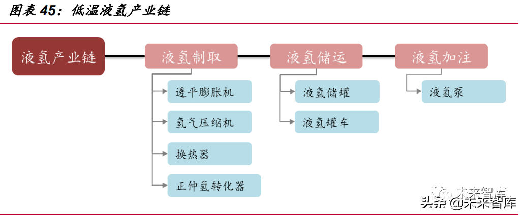 根據(jù)氫能產(chǎn)業(yè)發(fā)展不同階段,給予三條投 資主線:1)氫能發(fā)展早期階段,高壓氣態(tài)儲(chǔ)運(yùn)技術(shù)成熟,商業(yè)化程度高,其中車載儲(chǔ)氫 瓶將率先受益氫能車規(guī)模提升;2)氫能發(fā)展中期,低溫液氫將滿足大規(guī)模、長(zhǎng)距離氫能需求,低溫液化裝備作 為產(chǎn)業(yè)鏈核心環(huán)節(jié)將快速發(fā)展;3)規(guī)?;臍淠軆?chǔ)運(yùn)通常伴隨大量的氣體處理需求,包括壓縮、凈化等。