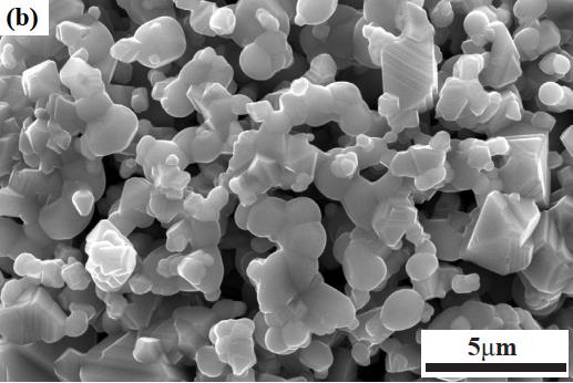 圖 3 Cr2O3-TiO2 復(fù)合粉末形貌特征:(a) 低倍;(b) 高倍