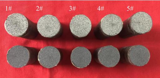 2.Cr2O3-TiO2/nano-YSZ 復(fù)合涂層結(jié)合強(qiáng)度 Cr2O3-TiO2/nano-YSZ 復(fù)合涂層結(jié)合強(qiáng)度如表4 所示, 抗拉結(jié)合強(qiáng)度測試后試樣如圖 7 所示。Cr2O3-TiO2/nano-YSZ 復(fù)合涂層平均結(jié)合強(qiáng)度為29.2 MPa。從圖中可以看出, 試樣均斷裂在納米YSZ 涂層與 Cr2O3-TiO2 界面處高輻射層。
