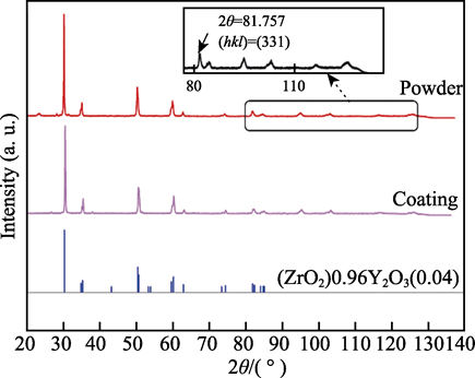 原始粉末、噴涂態(tài)粉末及噴涂態(tài)涂層XRD圖譜